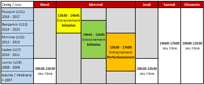Mercredi 15h30 – 17h : Entraînement Perfectionnement U15,U17, U19